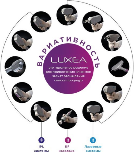 Первоначально необходимы минимальные вложения, а в дальнейшем аппарат легко настраивается и дополняется различными насадками под любые потребности клиники.